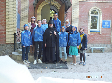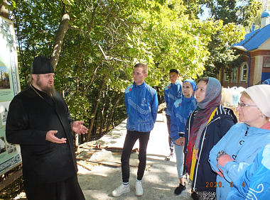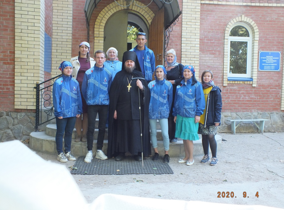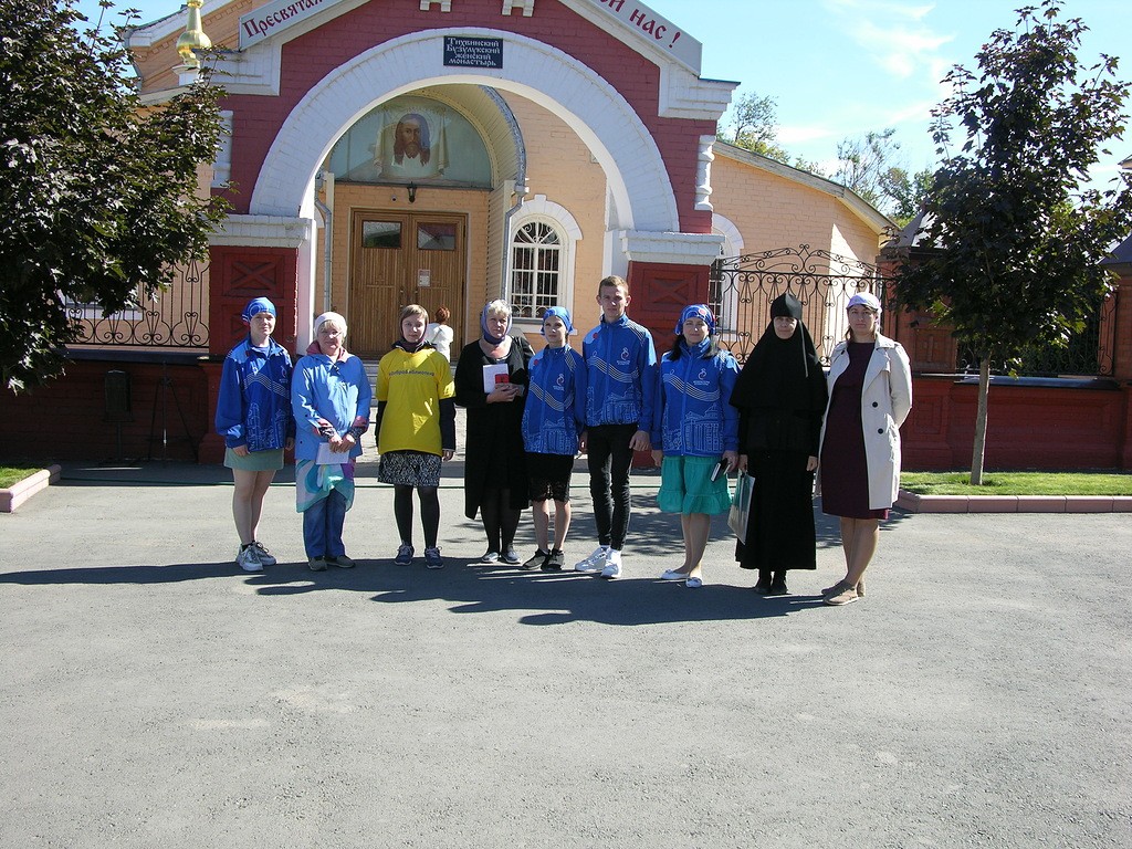 В действующем храме Всех Святых волонтеры познакомились со святынями монастыря, поднялись на колокольню храма, с которой открывается вид на весь город Бузулук.
