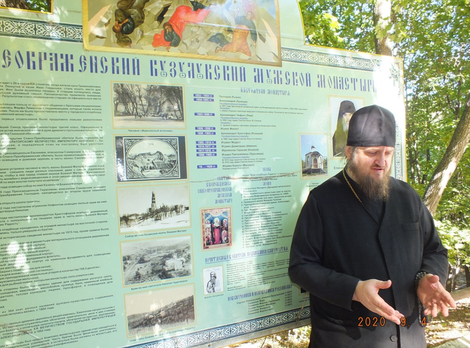Монахиня Селафиила проводила группу исследователей к месту захоронения схимонаха Максима (Пилипцева) 1863–1937 гг. Согласно сохранившимся народным преданиям, он прославился благодаря иноческим подвигам как прозорливый старец, который духовно возрастал в Спасо-Преображенском Бузулукском мужском монастыре. Именно этот монастырь стал следующим объектом нашего путешествия.