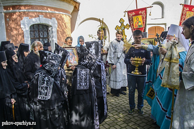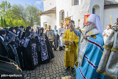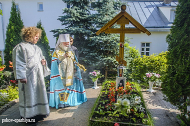 По окончании Божественной литургии митрополит Евсевий возглавил праздничный молебен с крестным ходом, во время которого у могилы усопшей настоятельницы обители схиигумении Людмилы (Ваниной) Высокопреосвященнейшим владыкой была отслужена заупокойная лития.