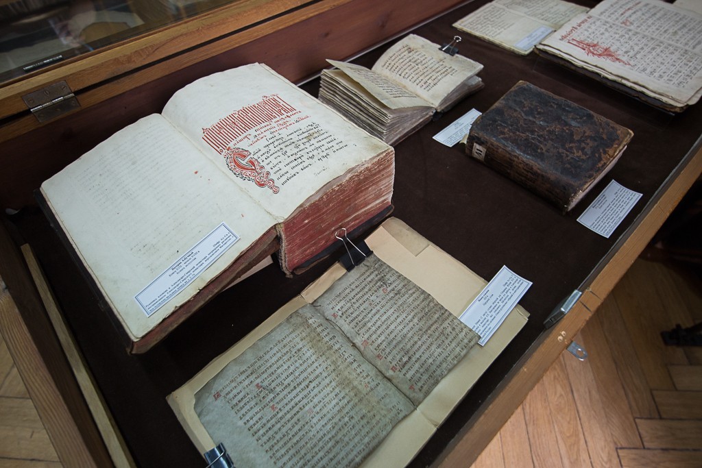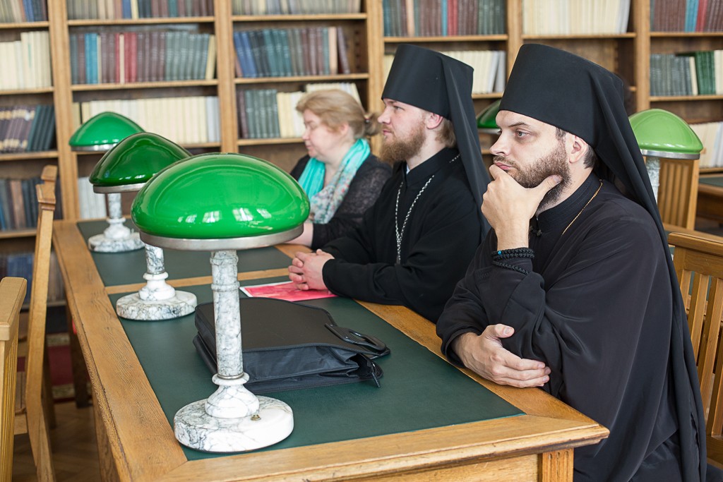 В отделе рукописей Библиотеки РАН журналистам представили материалы библиотеки Александро-Свирского монастыря, которая насчитывает 113 рукописей. Собрание включает богослужебные, богословские книги, переводы с греческого языка, сочинения по мировой истории с дополнениями о Московском царстве. Особый интерес представляют рукописные сборники с житиями русских святых – основателей монастырей: преподобных Александра Свирского, Александра Ошевенского, Кирилла Новоезерского, – а также жизнеописаниями святителей: епископа Новгородского Никиты, Патриарха Никона. Сохранились описания монастыря, составленные «книжными» монахами.
