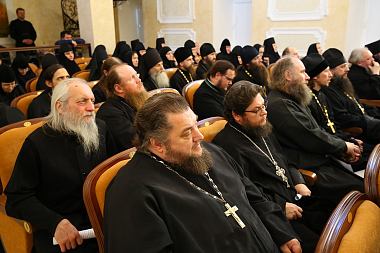 23 ноября участники совещания собрались в зале Духовно-научного центра Саровской пустыни. Прозвучали доклады игумении Иулиании (Каледы) «О работе Синодального отдела по монастырям и монашеству», преподавателя Нижегородской духовной семинарии иеромонаха Лаврентия (Собко) «Зачем нужно образованное монашество», насельника Вознесенского Печерского монастыря игумена Олега (Осипова) «Воля Божия и воля человеческая – свобода выбора».