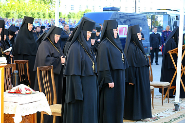 Игумения Сергия от имени всей монашеской семьи поблагодарила архипастырей за совершение праздничной литургии, а владыку Варсонофия – за согласие возглавить эти торжества.