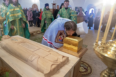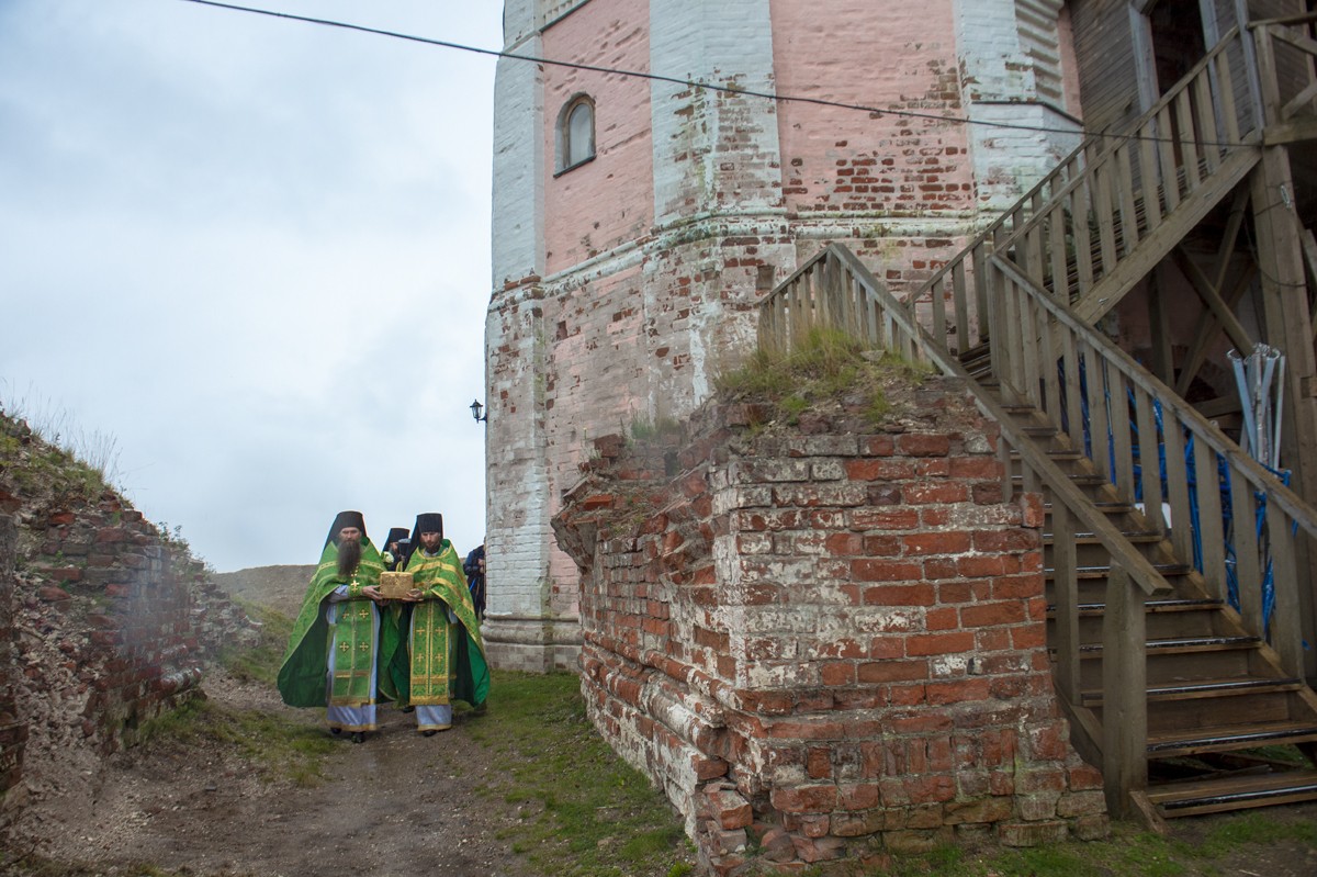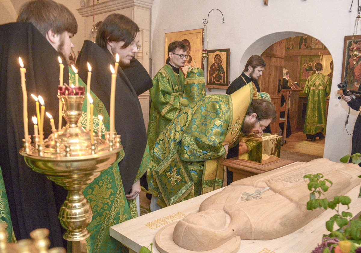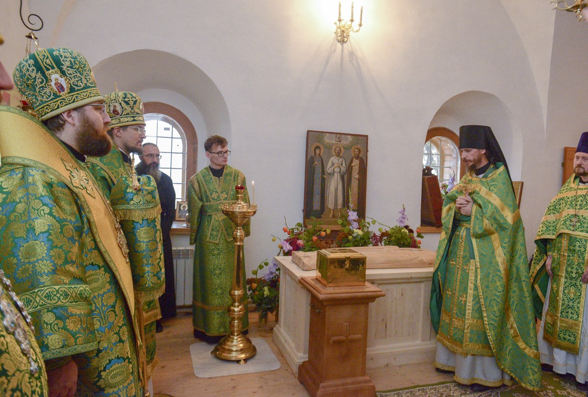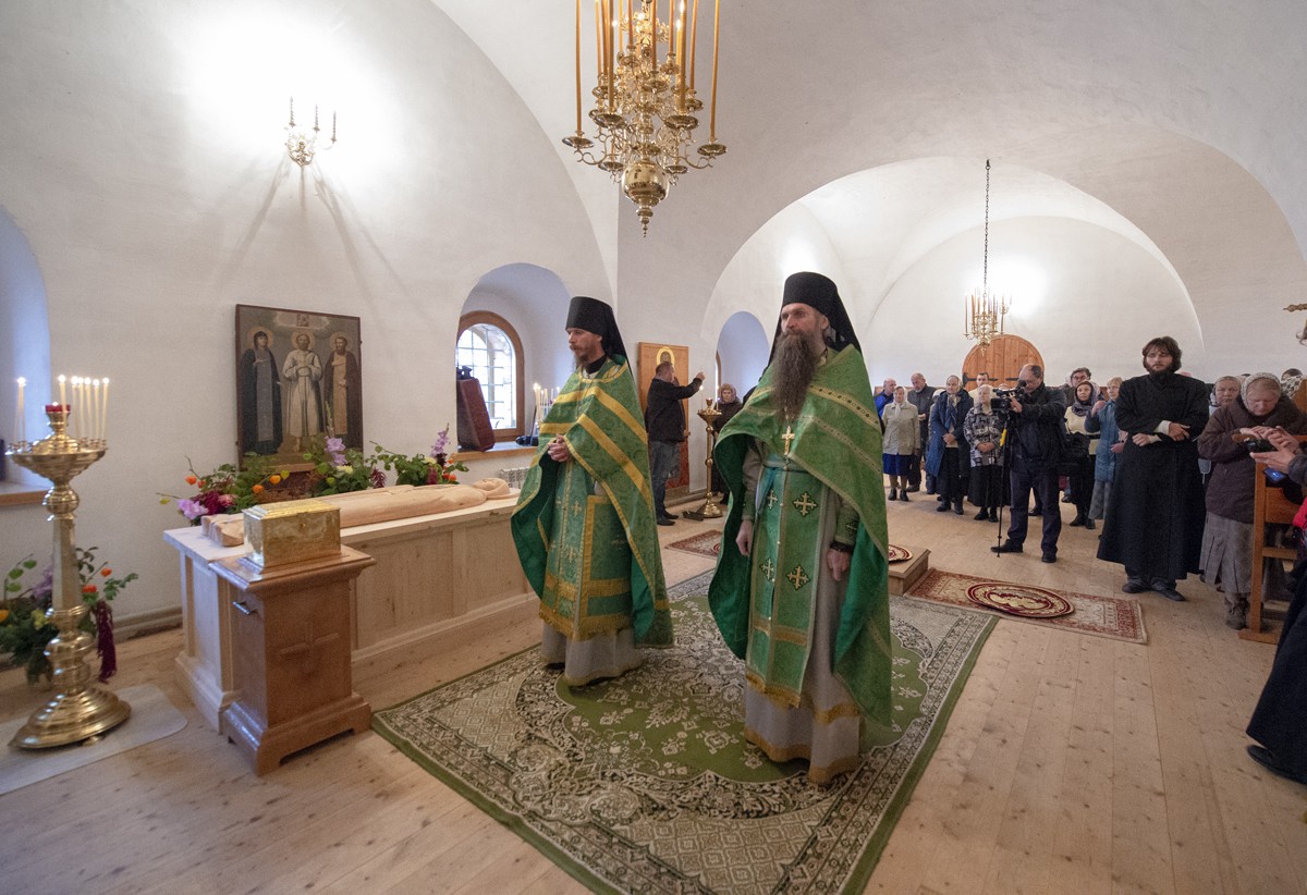 В этот день глава Вологодской митрополии митрополит Вологодский и Кирилловский Игнатий и правящие архиереи епархий Вологодской митрополии епископ Череповецкий и Белозерский Флавиан и епископ Великоустюжский и Тотемский Тарасий в сопровождении клириков, монашествующих и верующих со всей Вологодской области доставили на катере ковчег с мощам из поселка Устье в самый маленький островной монастырь.