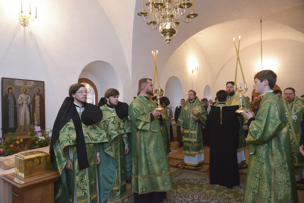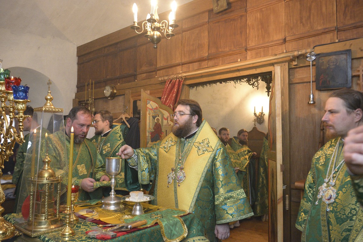 Проповедь по запричастном стихе произнес насельник Сретенского ставропигиального мужского монастыря Москвы игумен Киприан (Партс).