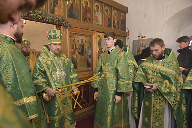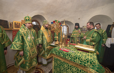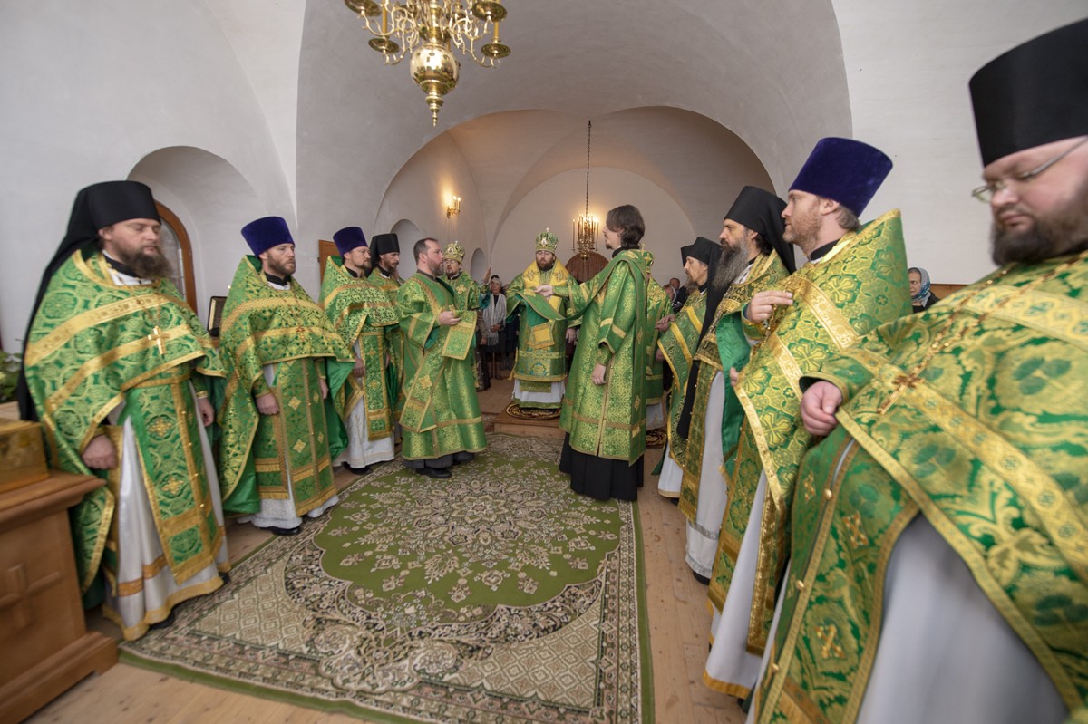 Затем митрополит Игнатий вместе с Преосвященными епископами в сослужении священников Вологодской митрополии возглавил первую за многовековую историю монастыря Божественную литургию, соборно совершаемую архиереями.