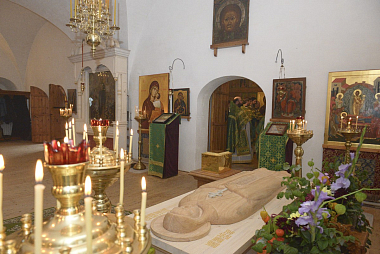 Мощи почитаемого вологодского святого были установлены на приготовленное у раки место.
