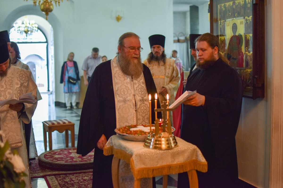 В Преображенском соборе священноархимандрит обители епископ Муромский и Вязниковский Нил молился за великой вечерней, по окончании которой совершил заупокойную литию по приснопамятному игумену монастыря архимандриту Кириллу (Епифанову), почивших насельниках и благодетелях и благословил коливо в их память.