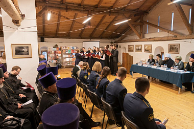 По окончании пленарного заседания работа Чтений продолжилась в рамках секций: «Тема Великой Отечественной войны в образовательном процессе», «Духовное наследие, запечатленное в памятниках церковной архитектуры», «Место воскресной школы в современном образовании», «Древние монашеские традиции в условиях современности».