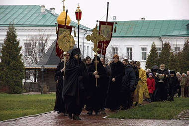 По окончании Литургии прошел традиционный крестный ход вокруг Дмитровского собора монастыря.