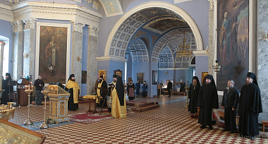 Работа круглого стола открылась молебном у мощей святителя Димитрия Ростовского, отслуженном в Димитриевском храме Спасо-Яковлевского монастыря.
