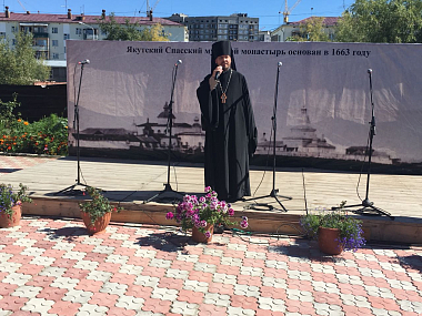 Перед началом праздничного концерта к собравшимся обратился настоятель Спасского мужского монастыря г. Якутска игумен Никон (Бачманов). Отец Никон передал всем участникам благословение и приветствие от архиепископа Якутского и Ленского Романа и выразил благодарность за оказанную помощь в организации ярмарки Окружной администрации города Якутска, пчеловодам Якутии и Отделу по делам молодежи Якутской епархии.