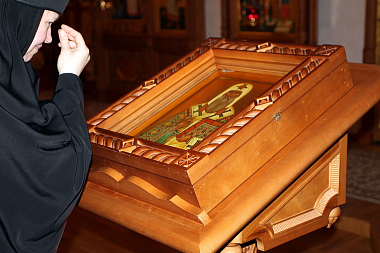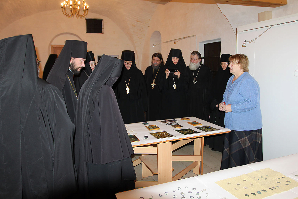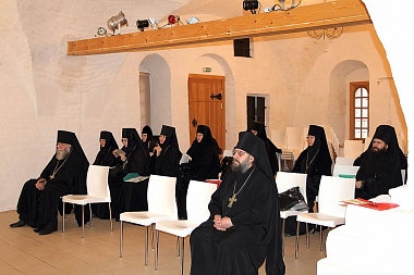 Перед началом заседания во Введенском храме обители был соборно отслужен молебен небесному покровителю монастыря святителю Иову, Патриарху Московскому.
