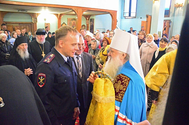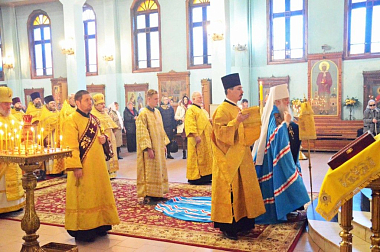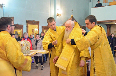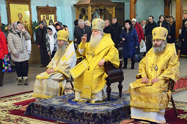 Его Высокопреосвященству сослужили епископ Урюпинский и Новоаннинский Елисей, епископ Калачевский и Палласовский Иоанн, благочинные епархиальных округов, руководители епархиальных отделов в священном сане, клирики митрополии.