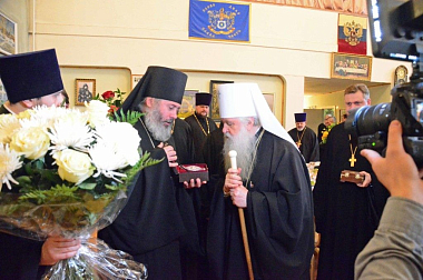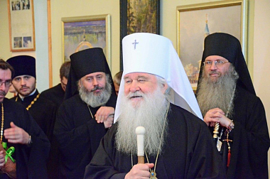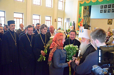 По окончании богослужения в актовом зале Свято-Духова монастыря митрополит Герман принимал поздравления.