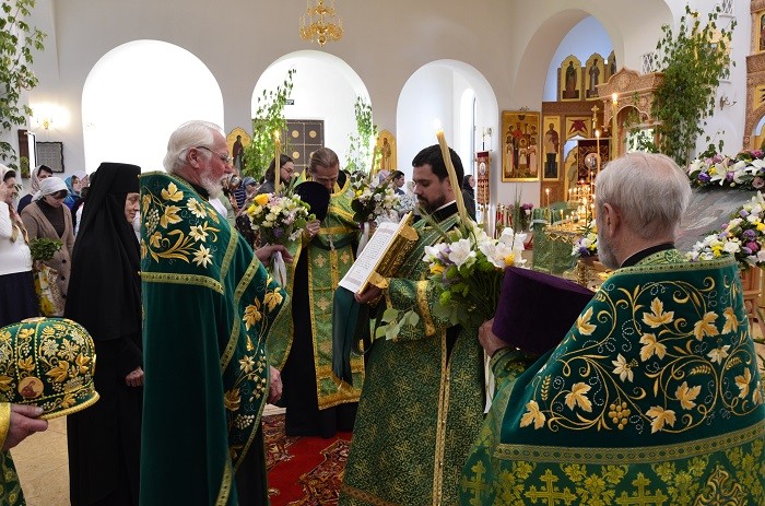 Божественную литургию, водосвятный молебен с чтением акафиста Пресвятой Троице и вечерню с чтением коленопреклоненных молитв совершил старший священник протоиерей Сергий Касянков в сослужении духовенства монастыря.