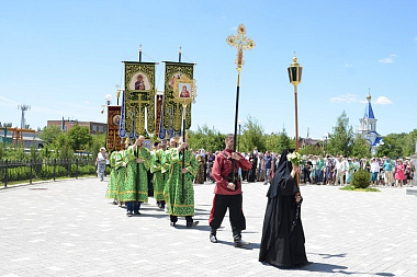 По окончании богослужения состоялся крестный ход вокруг Троицкого храма, который завершился соборной молитвой перед чтимым старинным образом Пресвятой Троицы с величанием празднику.