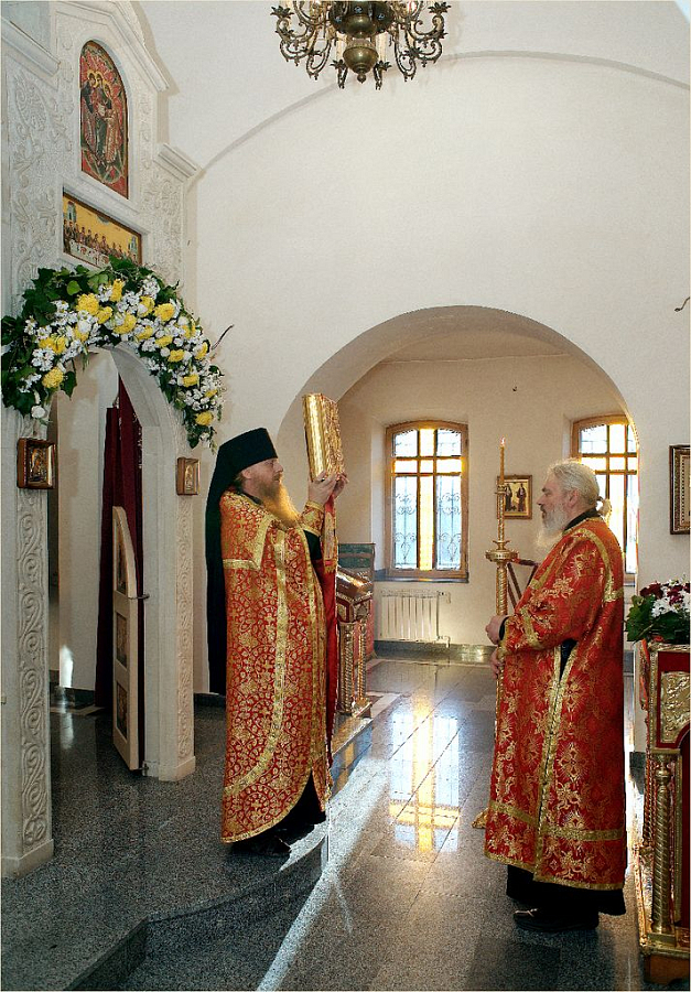 27 сентября, в пятницу 15-й седмицы по Пятидесятнице, когда Церковь совершает празднование Воздвижению Честного и Животворящего Креста Господня, Всенощное бдение и Божественную литургию в Троицком храме Свято-Климентовского монастыря при большом стечении прихожан и паломников возглавил благочинный Инкерманской обители иеромонах Авель (Василенко).