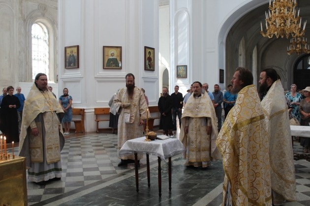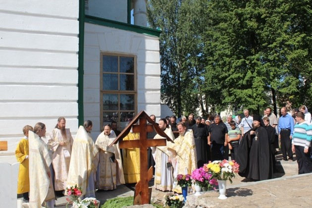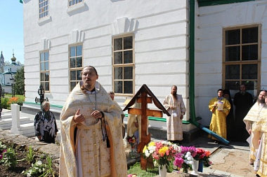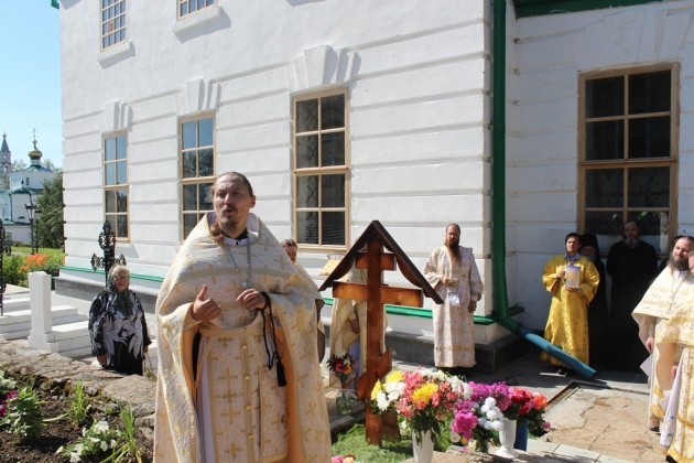 Богослужение в Крестовоздвиженском соборе Свято-Николаевского монастыря возглавил настоятель Свято-Косьминской пустыни игумен Петр (Мажетов) в сослужении наместника Крестовоздвиженского мужского монастыря г. Екатеринбурга игумена Флавиана (Матвеева) и братии Свято-Николаевского монастыря в священном сане.