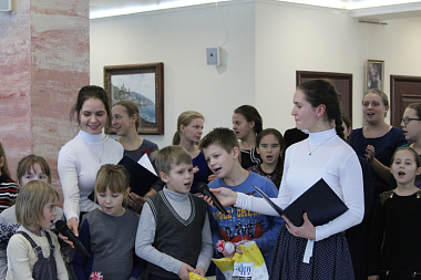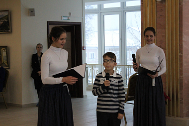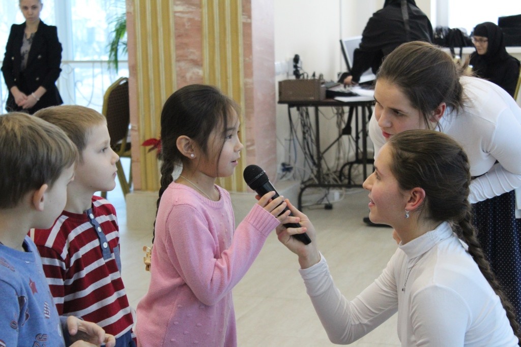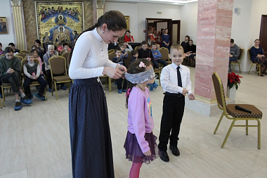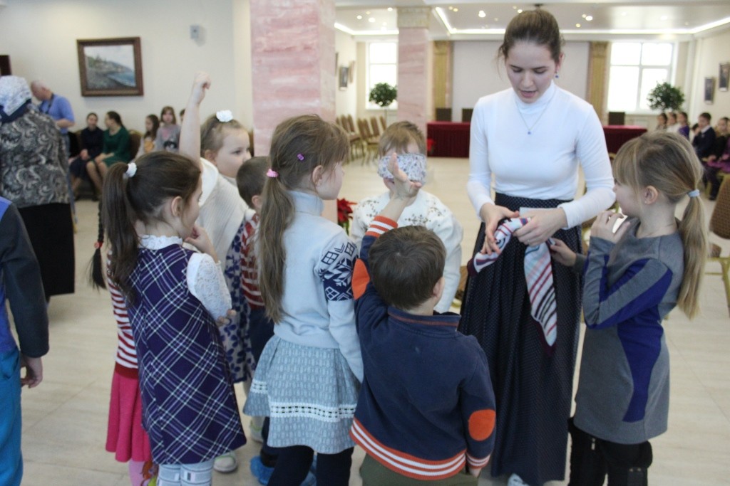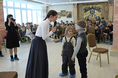 Поскольку накануне совершалось отдание праздника Введения во храм Пресвятой Богородицы, на концерте ведущие рассказали о празднике, прочитали стихи, посвященные празднику и Божией Матери. Введение Пресвятой Богородицы во храм можно в какой-то мере считать детским праздником, так как Пресвятую Богородицу ее родители отдали в храм на воспитание в возрасте 3-х лет. Когда Она поднималась в храм по ступеням своими маленькими ножками, ее сопровождали красиво одетые девочки и девушки со свечами в руках. Так этот детский праздник, на котором вспоминались Божия Матерь и Ее покровительство детям, немощным и слабым, стал в каком-то мере праздником Введения во храм. Ведь мероприятие начиналось и завершалось пением молитв. Среди игр-загадок, которые ведущие праздничного концерта предлагали юным участникам, были и видеозагадки, посвященные храму и его устройству. Дети, в особенности самые маленькие, наперебой вызывались участвовать в играх «Ангел-Хранитель», где нужно было провести человека с завязанными глазами мимо препятствий, уберегая его от опасности, и «Пять орешков», где нужно было называть различные хорошие качества человека. Праздник получился удивительно добрым и радостным.