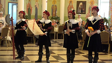 По окончании богослужения под пение праздничного тропаря все отправились в большую монастырскую трапезную, где участникам торжества был предложен праздничный обед. Гостей встречали привратники сказочного королевства и другие персонажи всем известной сказки «Золушка» – воспитанницы пансиона «Отрада» в собственноручно сшитых костюмах (с некоторой помощью сестер монастыря).