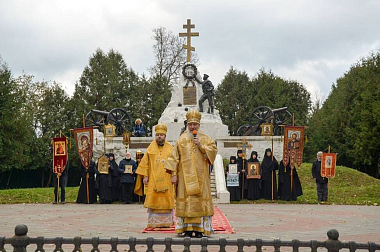 По окончании Литургии состоялся традиционный крестный ход к городскому мемориалу, установленному воинам, погибшим в Малоярославецком сражении, далее – к монументу Славы и к памятнику протоиерею Василию Васильковскому. В крестном ходе участвовали духовенство Малоярославецкого благочиния, жители города и многочисленные гости, приехавшие в город на праздник. Духовенство на каждой остановке крестного хода служило заупокойную литию о воинах, отдавших свои жизни за веру и Отечество в войне с Наполеоном.