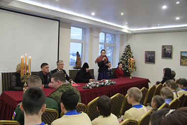 В большом конференц-зале Духовно-просветительского центра «София» школьников, кадетов, студентов ждала первая профориентационная часть мероприятия, которую открыла игумения Николая (Ильина), настоятельница Свято-Никольского Черноостровского женского монастыря – организатора праздника. Матушка игумения Николая поздравила присутствующих с Рождеством и Богоявлением, объяснив смысл более чем 10-дневных Святых дней как времени, когда мы стараемся особенно доставлять друг другу радость, прославляя родившегося Спасителя. Настоятельница монастыря представила высоких гостей и передала слово первой из выступавших – ректору Российского государственного социального университета Н.Б. Починок, представившей подрастающему поколению свой университет как ведущий ВУЗ станы в области социального служения.