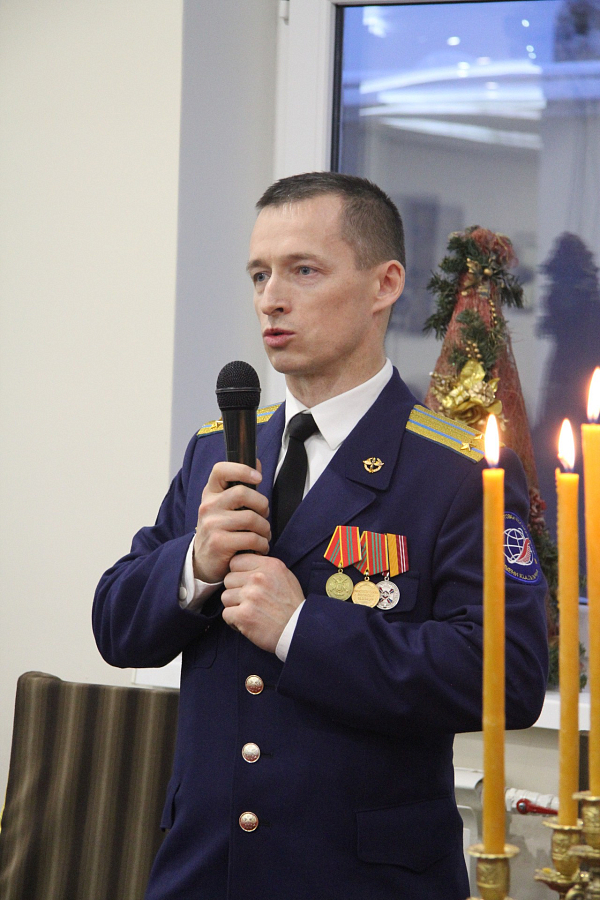 Летчик-космонавт подполковник С.Н. Рыжиков рассказывал в большей степени о своей первой профессии летчика. Отметив, что, когда он был в возрасте присутствующих в зале школьников и студентов, он даже и мечтать не мог о том, что когда-то станет возможным такое сотрудничество Церкви и государственных структур, позволяющее организовывать такие прекрасные мероприятия, позволяющие молодым людям и красивым девушкам вступать в жизнь, опираясь на столь возвышенные начала: веру, любовь к Родине и служение ближнему; однако и у его поколения в выборе профессии большую роль играла романтика и высокие идеалы.