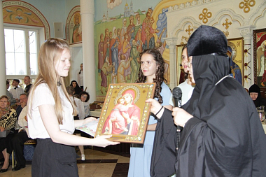 В заключительном слове настоятельница Свято-Никольского Черноостровского женского монастыря отметила, что эти дипломы и призы служат не для того, чтобы показать, что кто-то хуже или лучше выступает, а должны быть стимулом к тому, чтобы больше работать, больше стремиться проявлять свои таланты – то, что дал Бог.