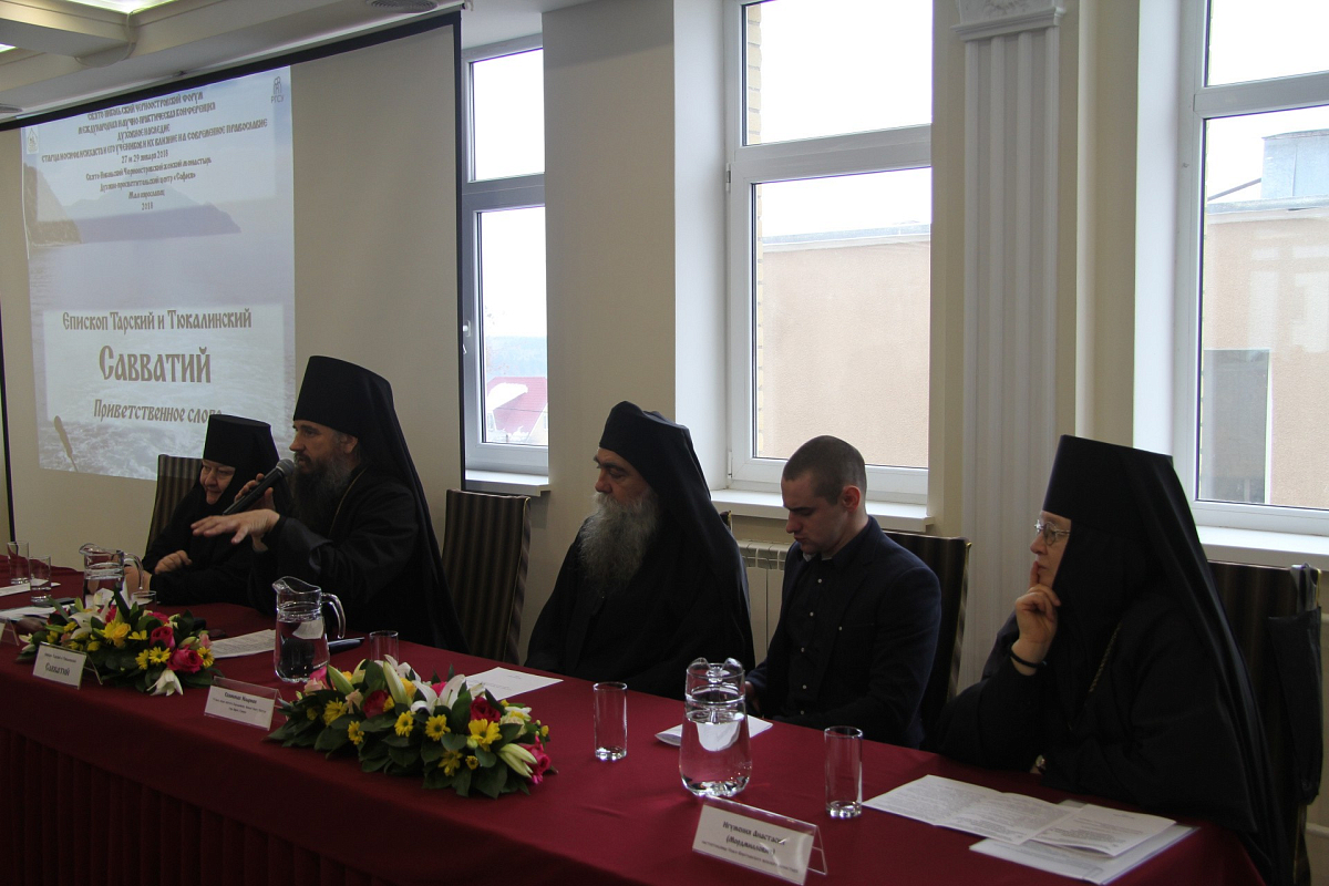 Открывая конференцию, игумения Николая (Ильина) представила почетных гостей, рассказала о влиянии старца Иосифа Исихаста и его учеников на современное афонское монашество и на современное Православие в целом, пожелала, чтобы нынешняя конференция стала достойным приношением афонским старцам, и передала слово епископу Тарскому и Тюкалинскому Савватию для приветствия участников мероприятия.