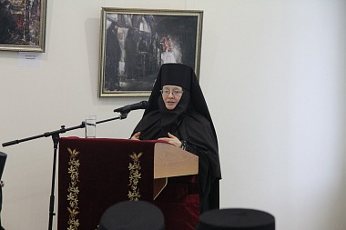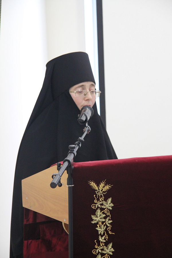 Заключал первый день работы конференции доклад игумении Анастасии (Мордмиллович), настоятельницы Спасо-Воротынского монастыря г. Калуги, рассказывавший о практических аспектах афонского и святоотеческого Предания о хранении ума и воспитании православного мышления.
