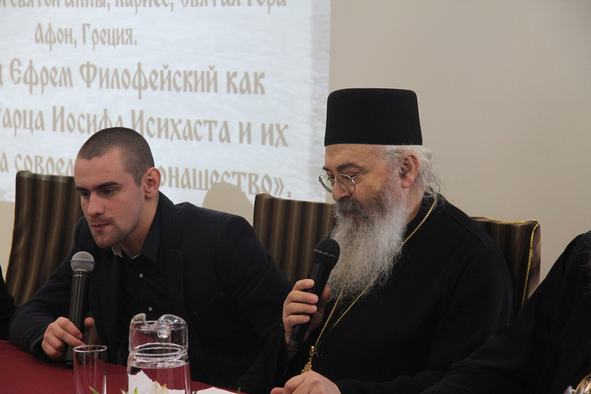 Первый день конференции был посвящен наследию старца Иосифа Исихаста и двух его учеников: старцев Иосифа Ватопедского и Харалампия Дионисиатского. Почетными гостями заседания в этот день являлись епископ Тарский и Тюкалинский Савватий и ученик старца Харалампия старец келии Священномученика Харалампия схимонах Иларион.