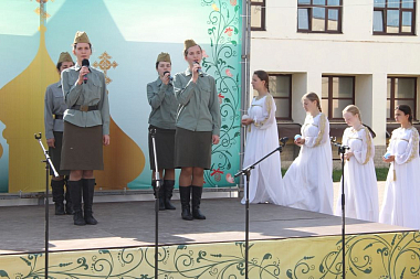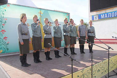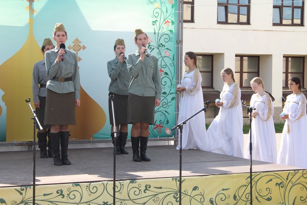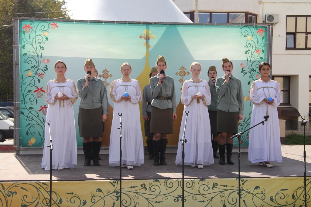 На сцене выставки-ярмарки состоялся двухчасовой концерт военных песен от творческих коллективов г. Малоярославца, второе отделение которого полностью было отдано вокально-хореографическому коллективу «Отрада». После концерта на сцене прошли показательные выступления кадетов Военно-патриотического клуба (кадетского отряда) в честь святителя Николая при Духовно-просветительском центре «София» и интерактивном музее «Два победоносных сражения под Малоярославцем в Отечественных войнах», созданных и действующих при финансовой поддержке Фонда Президентских грантов.
