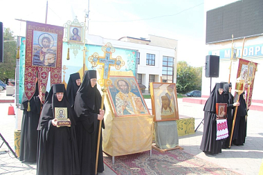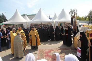 Выставка-ярмарка открылась праздничным крестным ходом от Свято-Никольского Черноостровского женского монастыря со святынями обители: чтимыми иконами Спаса Нерукотворного и святителя Николая, ковчегом с частицей мощей – и молебна на начало всякого благого дела.