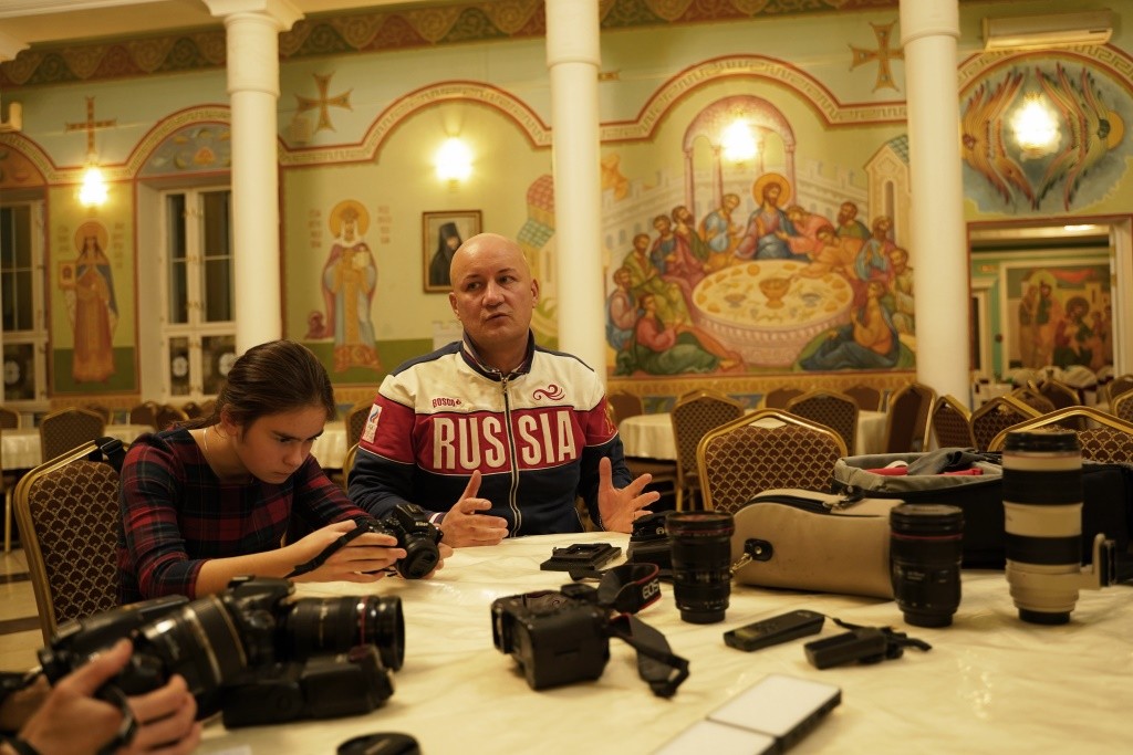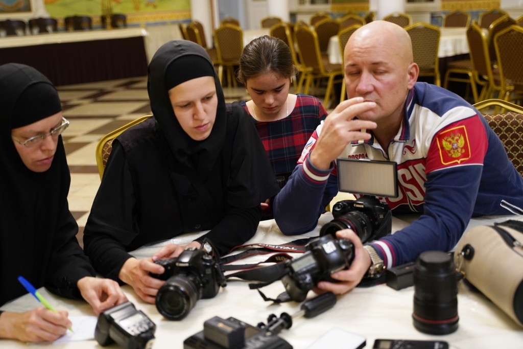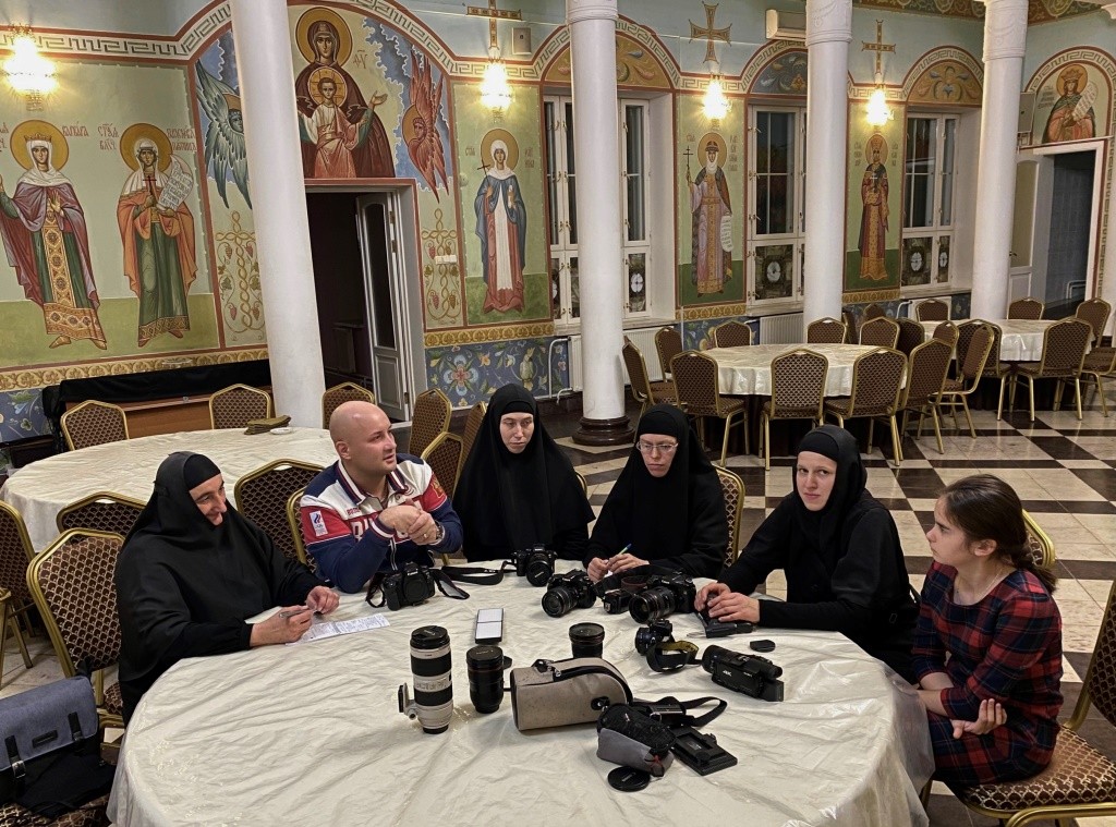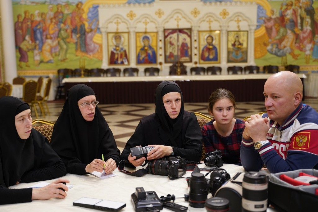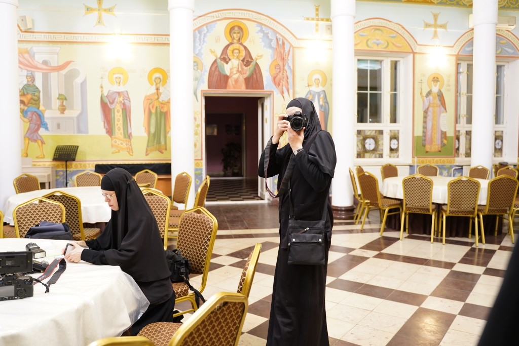 Мастер-класс прошел в большой трапезной монастыря, где чаще всего проходят концерты музыкального коллектива «Отрада» во время праздничных трапез, где звучит проповедь церковных иерархов, проходили и детские спектакли и монашеские синаксисы, которые нужно запечатлеть и на видео, и в фотографиях.