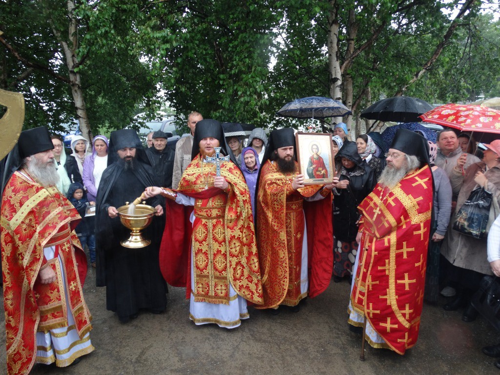 По окончании Литургии был совершен крестный ход вокруг храма.
