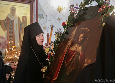 В завершение праздника все были приглашены на праздничную трапезу, за которой игумения Антония и клирик обители иерей Дионисий Васильев поздравили иеромонаха Даниила с днем тезоименитства и преподнесла ему на память Иверскую икону Божией Матери, а все присутствующие исполнили для именинника многолетие.