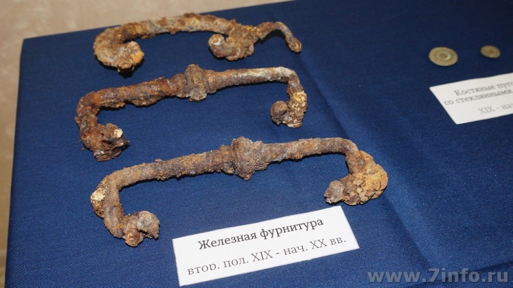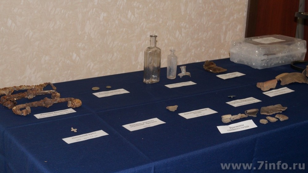Среди ценных находок директор Рязанской археологической экспедиции Василий Конов выделил фрагмент сосуда средневековой эпохи, фрагмент женского браслета XIII века, коллекцию из 16 пуговиц с изображением герба Рязанской губернии, относящуюся к первой половине XIX века, обломки стеклянного сосуда, предположительно, слезницы, или ельницы, XIX века и нательный крест XIX–XX веков, принадлежавший ребенку .