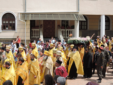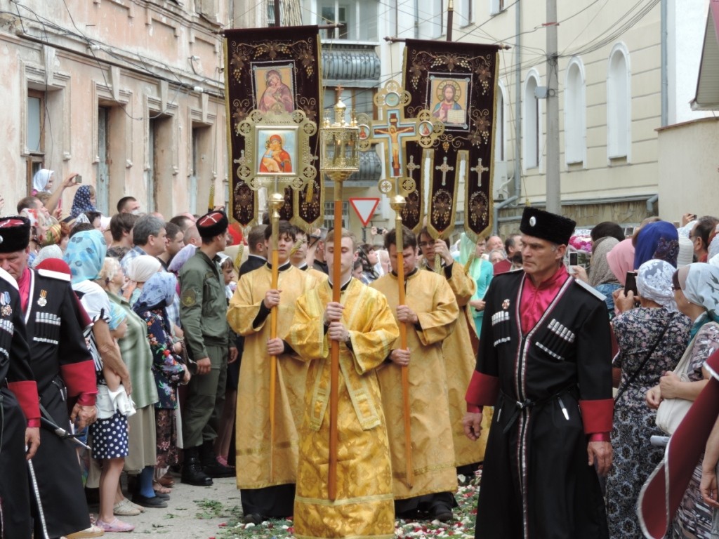 Завершилось празднование традиционным крестным ходом. Святые мощи были обнесены вокруг стен монастыря по улице, усыпанной лепестками роз. Когда святые мощи вновь внесли и поставили в центр Свято-Троицкого собора, богомольцы долго шли, чтобы поклониться великому крымскому святителю в день его памяти.
