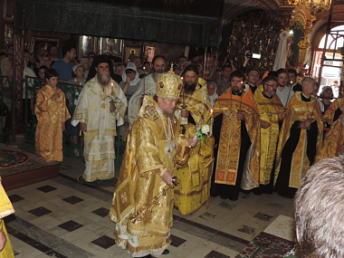 За Литургией присутствовали гости из Элладской Православной Церкви – митрополит Арголидский и Навплийский Нектарий, викарный епископ Каллиник – и архиепископ Джанкойский и Раздольненский Алипий.
