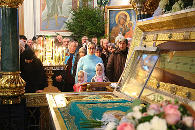 15 января 2018 года в Свято-Троицком Серафимо-Дивеевском женском монастыре молитвенно почтили день памяти прп. Серафима Саровского. Богослужения состоялись в Троицком соборе обители, где пребывают мощи празднуемого святого.