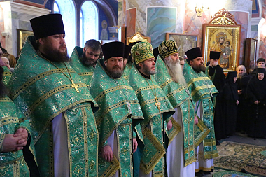 В храме вместе с многочисленными паломниками и прихожанами молились настоятельница Свято-Троицкого Серафимо-Дивеевского монастыря игумения Сергия (Конкова) с сестрами обители, настоятельница Макарьевского Свято-Троицкого Желтоводского монастыря игумения Михаила (Орлова), настоятельница Покровской Свято-Введенской Островной пустыни игумения Феврония (Маратканова), настоятельница монастыря в честь Преподобномученицы Великой княгини Елисаветы г. Калининграда игумения Елисавета (Кольцова), настоятельница Выксунского Иверского монастыря игумения Антония (Миронова), настоятельница Николаевского Георгиевского Абабковского монастыря игумения Никона (Желякова), настоятельница Дальне-Давыдовского монастыря игумения Руфина (Тарасенко), настоятельница Арзамасского Свято-Николаевского монастыря игумения Филарета (Шевченко), настоятельница Крестовоздвиженского монастыря в дер. Быдреевке игумения Иулиания (Петрова), настоятельница Спасского монастыря Симбирской епархии игумения Сергия (Вотрина), настоятельница Свято-Троицкого Островоезерского монастыря г. Ворсмы монахиня Серафима (Беляева), настоятельница архиерейского подворья Арзамасского Новодевичьего Алексия, человека Божия, монастыря монахиня Феогноста (Гончарова), настоятельница архиерейского подворья Мало-Пицкого монастыря во имя Иконы Божией Матери «Всех скорбящих Радость» инокиня Филарета (Андрейко), настоятельница Нижегородского архиерейского подворья храма в честь Святых Кирилла и Мефодия инокиня Алипия (Андрейко).