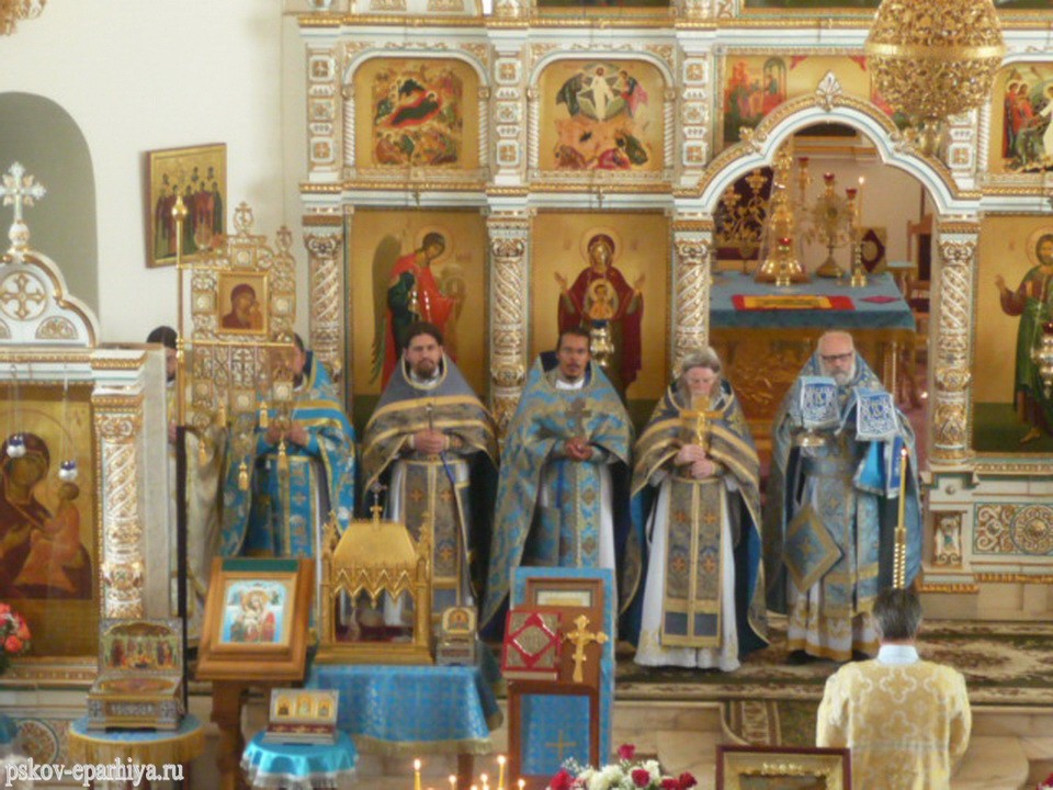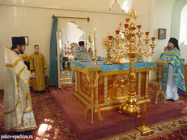 В этот день Божественную литургию в монастырском храме в честь иконы Божией Матери «Всех скорбящих Радость» возглавил благочинный Плюсского округа Псковской митрополии протоиерей Александр Тимофеев.