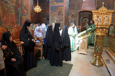 Богослужебные песнопения исполняли два хора – монашеский и из прихожан и паломниц обители.