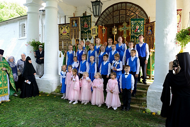 Затем перед гостями выступили воспитанники монастырской Воскресной школы и всем было предложено праздничное угощение.