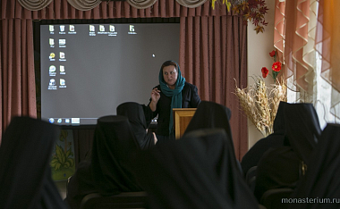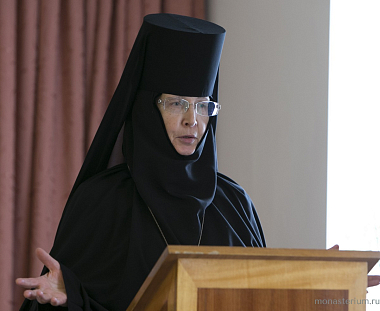 Игумения Феодора (Трубач), настоятельница Свято-Благовещенского женского монастыря г. Киржача, сделала сообщение о внутренних и внешних трудностях, с которыми встречается новоначальный послушник в монастыре.