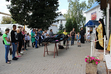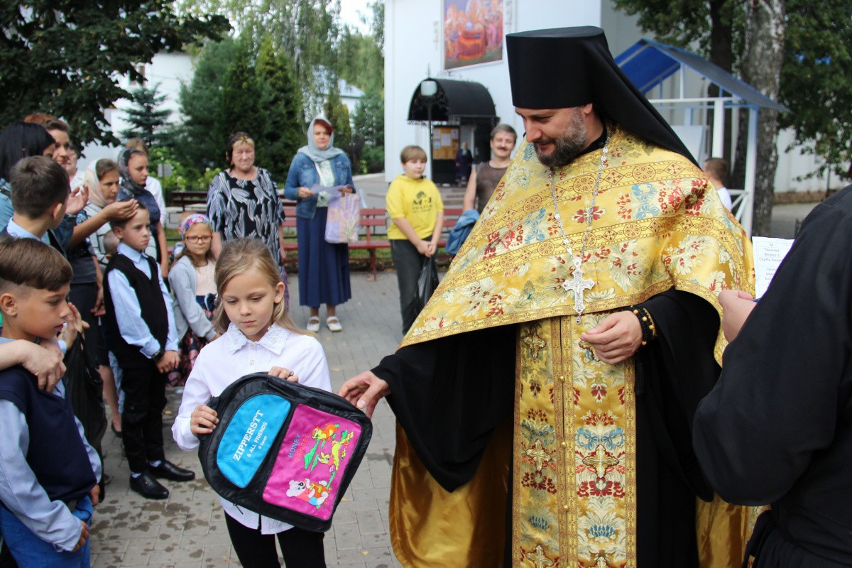 В завершение акции в Свято-Успенском мужском монастыре был отслужен молебен на начало учебного года, после которого все канцелярские принадлежности были переданы многодетным семьям.