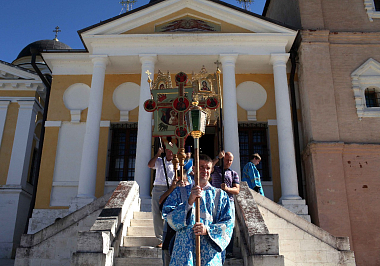 По окончании Литургии был совершен крестный ход вокруг обители.