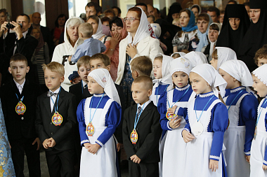 По окончании торжеств игумения София подарила первоклассникам икону святого равноапостольного князя Владимира, покровителя школы, и благословила на предстоящий учебный год.