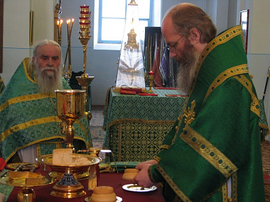 Перед началом Божественной литургии епископ Серафим совершил освящение новой раки преподобного Макария Жабынского, которую пожертвовали обители жители города Тулы, почитатели преподобного Макария.