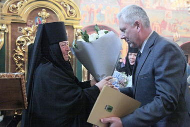 Поздравляя игумению Варвару с памятной датой, митрополит Пантелеимон напомнил, что матушка Варвара 30 лет назад приняла эту древнюю, прославленную в истории обитель разрушенной и поруганной. «На протяжении этих лет и настоятельница, и сестры молились ко Господу, – отметил владыка, – чтобы им была дарована возможность восстановить монастырь и благоукрасить это святое место. И сегодня вместо разрухи и запустения мы видим восстановленные храмы, в которых не умолкает молитва».